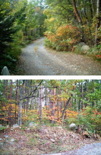 赤い樹皮のアカマツに混じって覗く紅葉が綺麗です。僕はこの季節の家の前の道の風景が結構、気に入っています。